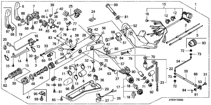 | 93 | 40105-ZY9-A00 | Пыльник кабеля румпеля (Grommet, steering handle cable) | под заказ | 4060 руб. | |