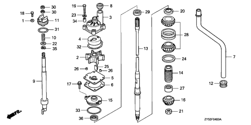 Модификация Вашего двигателя: Honda BF135A4 LCU Вернуться к выбору узлов мотора Водяной насос / Вертикальный вал |