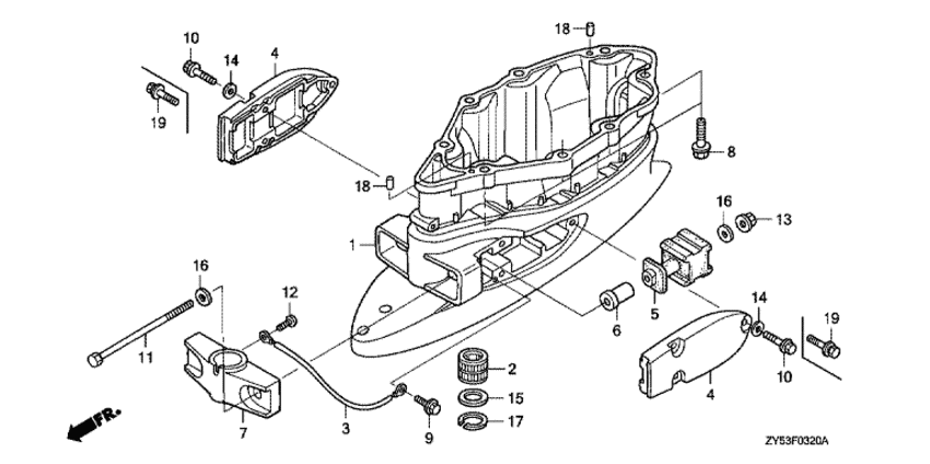 Модификация Вашего двигателя: Honda BF135A4 XCU Вернуться к выбору узлов мотора Удлинение корпуса |