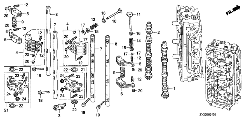 Модификация Вашего двигателя: Honda BF225A6 XCU Вернуться к выбору узлов мотора Распределительный вал / Коромысло |
