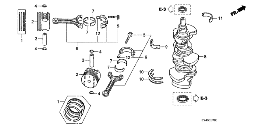 | 1 | 13010-ZY3-A00 | Комплект поршневых колец (std.) (Ring set, piston (std.)) | 6 шт | 9780 руб. | |