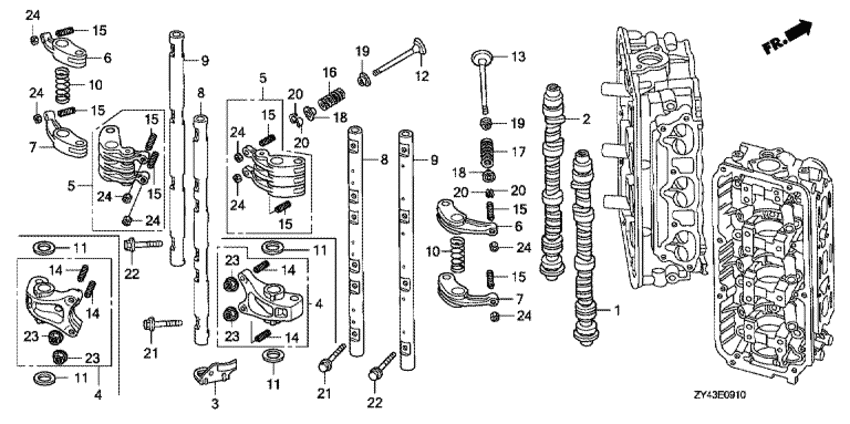 Модификация Вашего двигателя: Honda BF225AK1 LU Вернуться к выбору узлов мотора Распределительный вал / Коромысло |