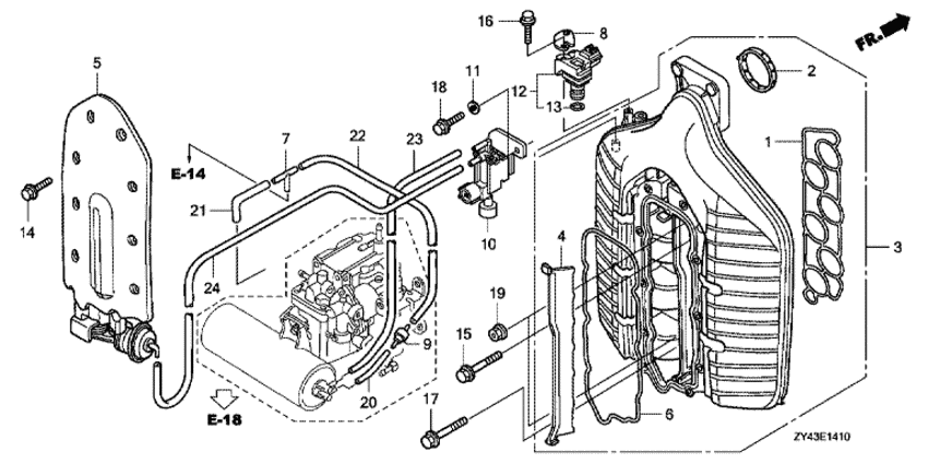 | 1 | 17105-ZY3-004 | Прокладка впускного коллектора (Gasket, intake manifold) | 1 шт | 14240 руб. | |