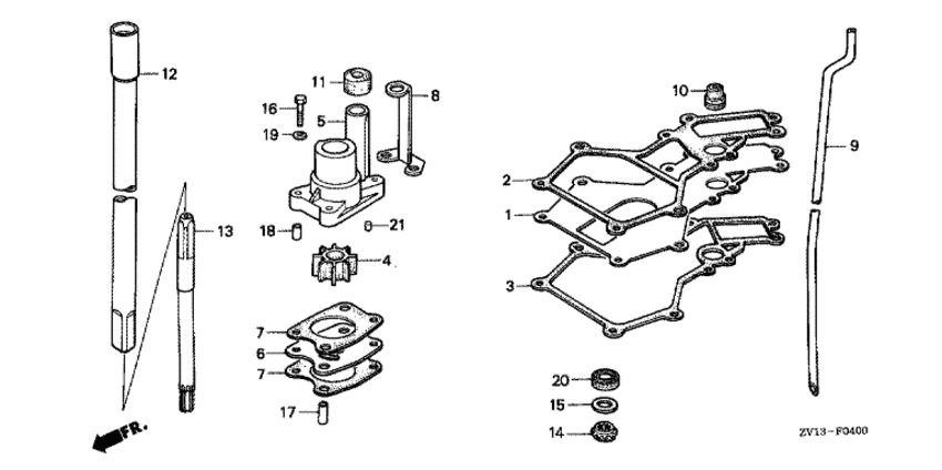 Модификация Вашего двигателя: Honda BF4.5BX SGB Вернуться к выбору узлов мотора Водяной насос / Вертикальный вал |