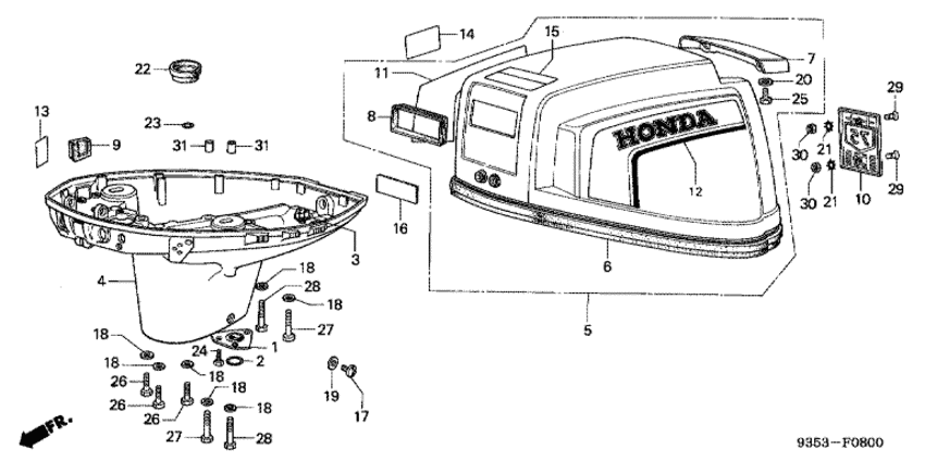 Модификация Вашего двигателя: Honda B75K2 LD Вернуться к выбору узлов мотора Крышка двигателя (капот) / Масляный картер |