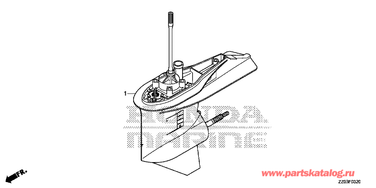 Модификация Вашего двигателя: Honda BF100AK1 LRTU Вернуться к выбору узлов мотора F-03-20 Картер коробки передач в сборе |