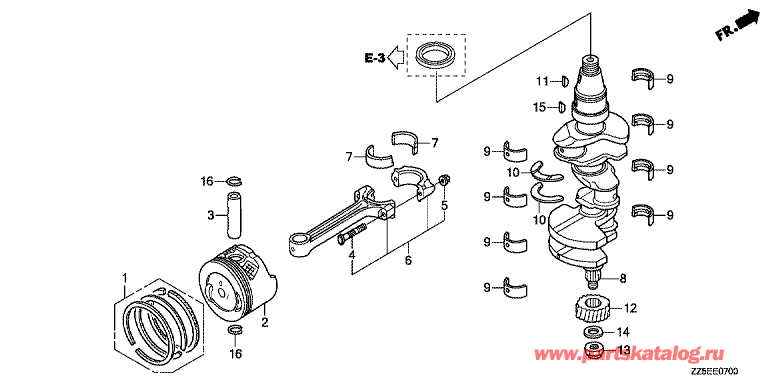 Модификация Вашего двигателя: Honda BF50DK4 SRTU Вернуться к выбору узлов мотора E-07 Коленвал / Поршень |