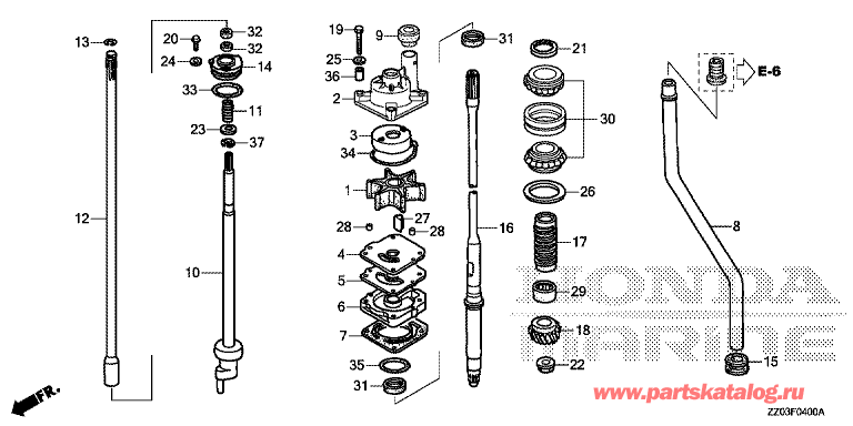 Модификация Вашего двигателя: Honda BF80AK1 LRTU Вернуться к выбору узлов мотора F-04 Водяной насос / Вертикальный вал |