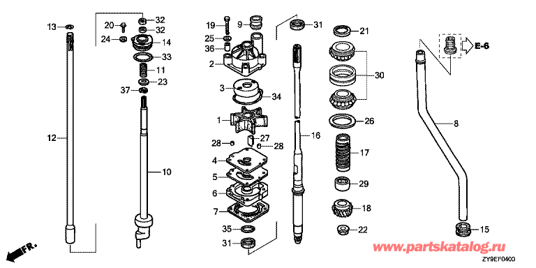Модификация Вашего двигателя: Honda BF90DK5 LRTR Вернуться к выбору узлов мотора F-04 Водяной насос / Вертикальный вал |