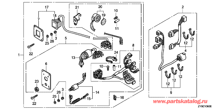 | 8 | 32545-ZZ5-000 | Жгут в сборе, панель переключателей (Harness Assy., Switch Pan) | под заказ | 9330 руб. | |